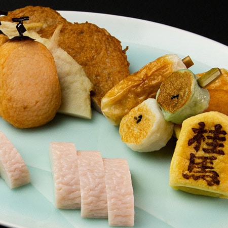 原材料/魚肉(グチ、ハモ、イトヨリ、イカ) 、ごぼう 、卵、砂糖、みりん、塩、昆布だし、澱粉、食物油(大豆、菜種)、食物油(コーン、パーム) 、 ブドウ糖、醤油(大豆・小麦を含む)、魚醤、椎茸(粉末)、ごま(茶壷に使用)