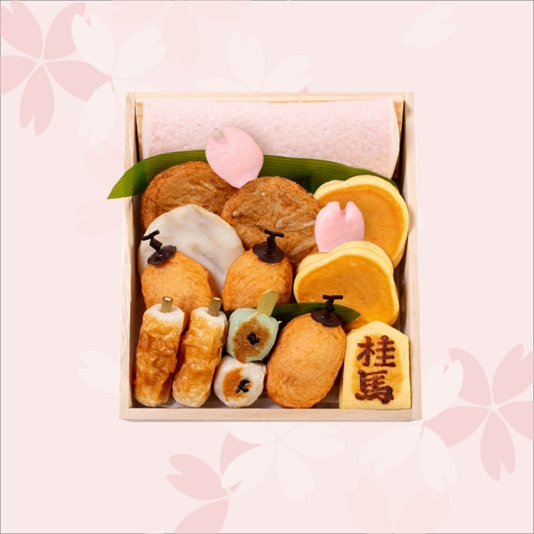 詰合せ内容/桜はなびら2 百年蒲鉾1 梅焼2 柿天3 豆竹輪2 茶壷1 駒焼1 ミニごぼう天2 ミニ白ごぼう天1