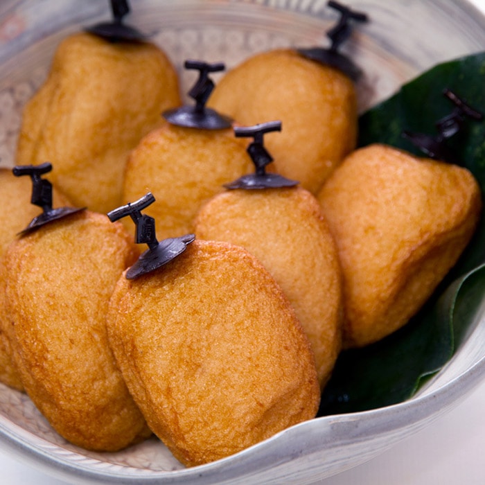 原材料/魚肉(グチ、ハモ、イカ)、卵、砂糖、みりん、塩、昆布だし、澱粉、食物油(大豆)、醤油(大豆・小麦を含む)、魚醤、椎茸(粉末)/着色料(コチニール)