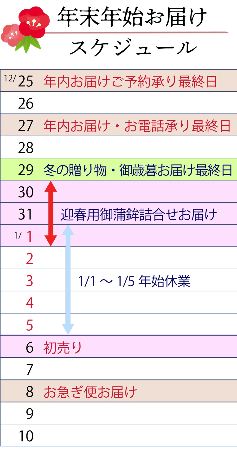 年末年始のお届けについて