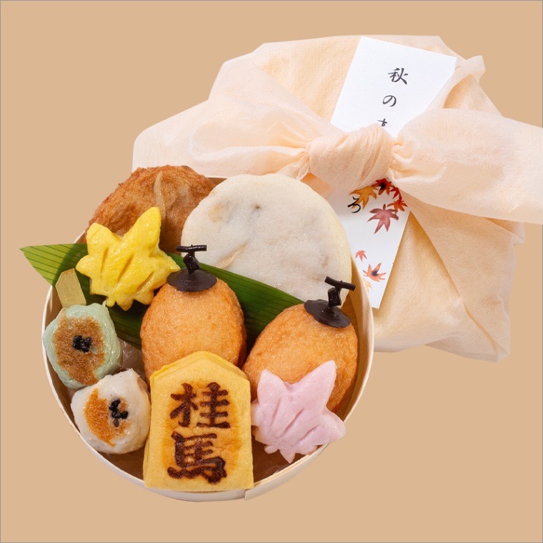 原材料/魚肉(グチ、ハモ、イカ)、ごぼう、卵、砂糖、みりん、塩、昆布だし、澱粉、小麦粉、食物油(大豆)、ブドウ糖、醤油(大豆・小麦を含む)、魚醤、椎茸(粉末)ごま(茶壷に使用)/着色料(コチニール、クチナシ、紅花)