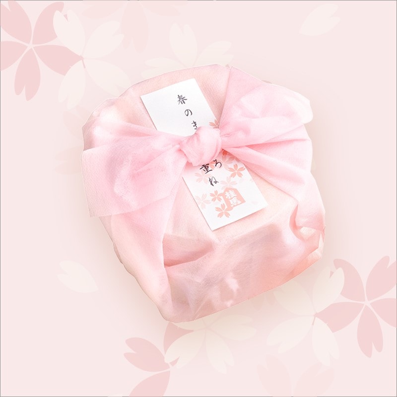 原材料/魚肉(グチ、ハモ、イカ)、ごぼう、菜の花、もち米、桜塩漬け、卵、砂糖、みりん、塩、昆布だし、澱粉、小麦粉、食物油(大豆、菜種)、ブドウ糖、醤油(大豆・小麦を含む)、魚醤、椎茸(粉末)、ごま(茶壷に使用)/着色料(コチニール、紅花・クチナシ)