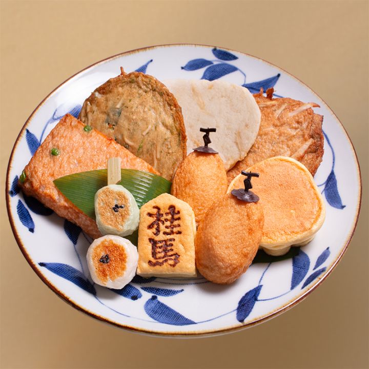 詰合せ内容/ 柿天2 梅焼1 駒焼1 茶壷1 白ごぼう天1 ごぼう天1 野菜天1 桂馬流お好み焼1